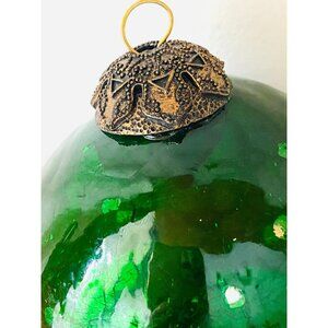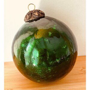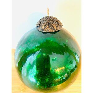 Vintage Mercury Crackle Green Finish Ornament Kugel Style Christmas 5 Inch H