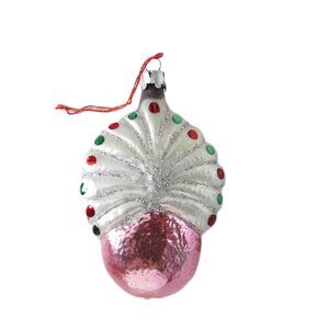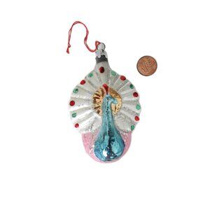 Vintage Mercury Glass Christmas Ornament Peacock Bird Poland Pink Blue White