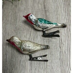 Vintage Mercury Glass Clip On Bird Ornaments Set Of 2 - 1 with Fiberglass Tail