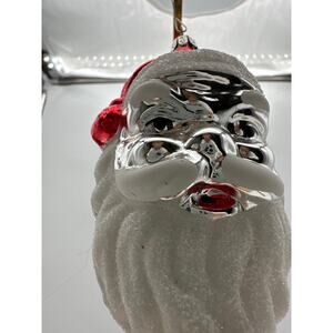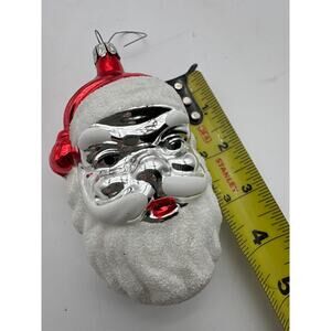 Vintage Mercury Glass Santa Claus Christmas Ornament Mica Red Silver White 4"