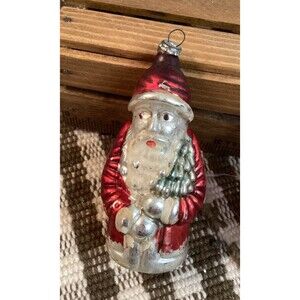 Vintage Mercury Glass Santa Claus Small Christmas Tree Ornaments Painted