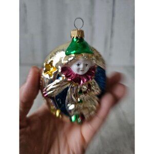 Vintage Mercury glass jester clown Moon ornament glass Xmas tree