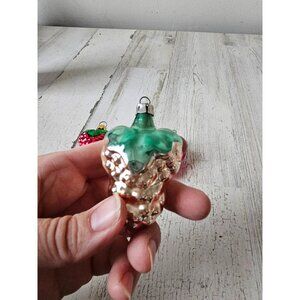 Vintage Mercury grape ornament set strawberry fruit Xmas tree pink silver red