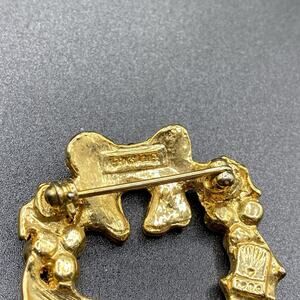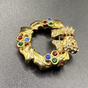 Vintage Merksamer Rhinestone Christmas Wreath Brooch Gold Tone