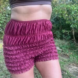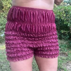 Vintage Merlot maroon ruffle pleat Pettipants bloomers sissy square dance shorts
