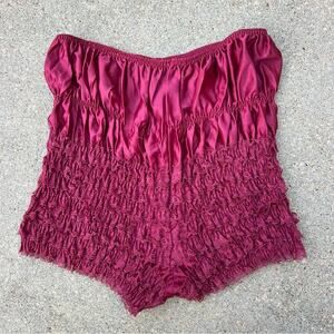 Vintage Merlot maroon ruffle pleat lace satin Pettipants bloomers sissy square dance shorts