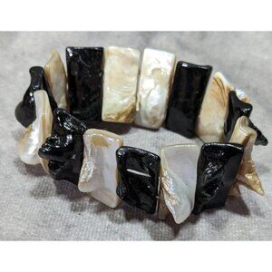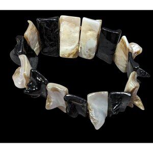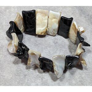 Vintage Mermaidcore Mother Of Pearl Black And White Stretch Bracelet