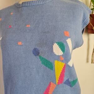 Vintage Merona Abstract Sweater Vest M Periwinkle Blue Pastel Pullover