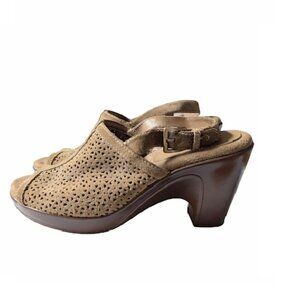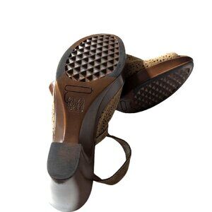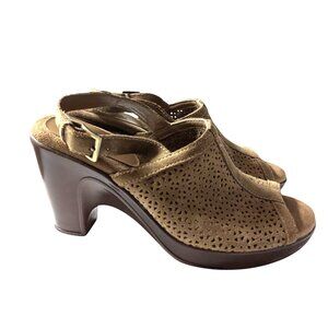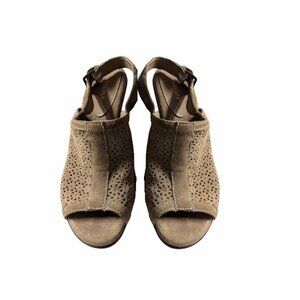 Vintage Merona Ankle Strap Taupe Suede Leather Open Toe Sandal Shoes Size 7.5