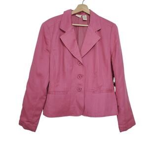 Vintage Merona | Linen Bubblegum Pink Three Button Front Blazer with Pockets