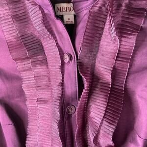 Vintage Merona Ruffled Midi Dress Women's Size 6 Cap Sleeves Button Down Belted