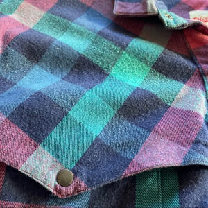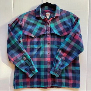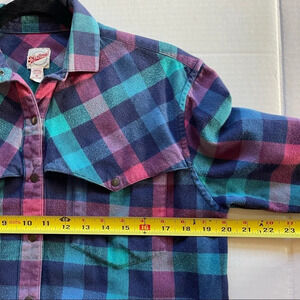Vintage Merona Sport Plaid Long Sleeve Women Shirt size M Y2K Green Blue Pink