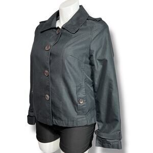 Black Button Closure Collared Buckle Cuff Dress Coat Jacket Merona