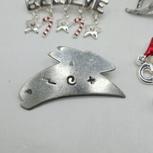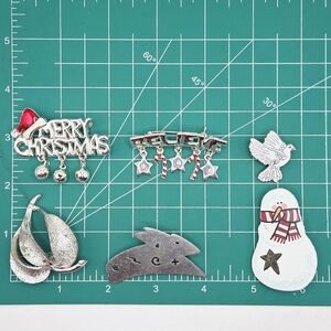 Vintage Merry Christmas Believe Family Dove Snowman Brooches Lot of 6