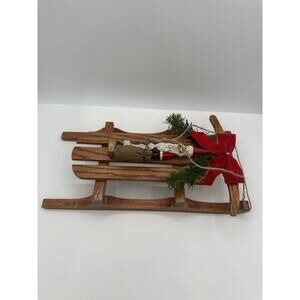 This charming rustic wooden Christmas sled decoration brings a warm, traditional holiday feel to any home. The sled is beautifully crafted from stained wood and decorated with: