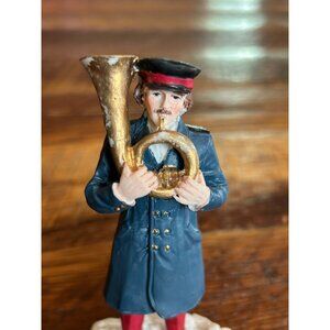 Vintage Mervyn's Christmas Village Accessory Of A Man Playing Tuba In Blue Coat