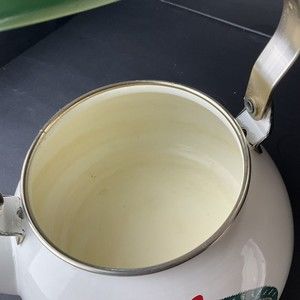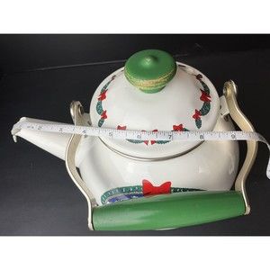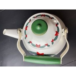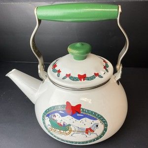The tea kettle is a collectible item that falls under the categories of kitchen and home, small appliances, and tea kettles. Its brand name is a holiday tradition, and it is a vintage item that is in good condition. The buyer can rest assured that they are getting a quality product that is well-suited for use or display.
