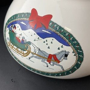 Vintage Mervyn's Porcelain on Steel Holiday Tradition Tea Kettle Winter Sleigh