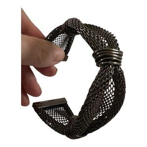 Stylish black mesh cuff bracelet with a unique design dating to the 1940’s. Beautiful bracelet.