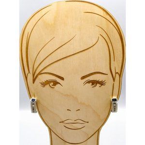 Vintage Mesh Half Hoop Earrings, Unique Crystal Channel Clip Ons in Silver Tone