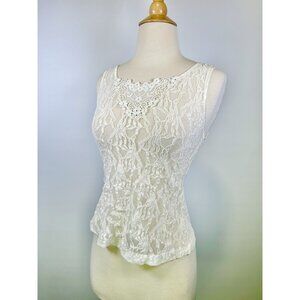 Vintage Mesh Lace Tank See-Through Coquette Fairy Whimsy Cottagecore Small