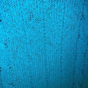 Bring retro charm to your wardrobe with this vintage Messages short sleeve sweater in a vibrant turquoise hue. Made from soft 100% acrylic, it features a relaxed silhouette with a ribbed hem and open-knit texture—perfect for layering or wearing on its own during transitional seasons.