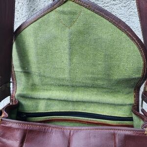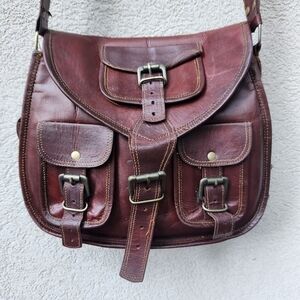Vintage Messenger Bag Leather Brown Medium Lined Satchel Pockets Shoulder Strap