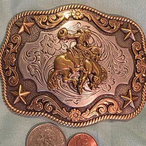 Vintage Metal Belt Buckle, Nice Nocona Brass and Silver Bronco Busting, Nice