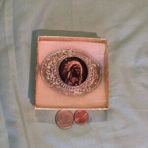 Vintage Metal Belt Buckle, Nice Silver Native Design, Man, Nice Western Design, 3 1/4" x 2 1/2", Heavy Duty, Quality, Thick Metal, For Belts, Fashion, Shelf Display, Western Wear, Southwest, Country, Fun, Nice.