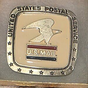 Vintage Metal Belt Buckle, Nice Silver and White Enamel, U.S. Mail, United States Postal Service, Post Office, Mailman Mail Carrier, Nice Western Style Design, 2 3/4" x 2 3/4", Heavy Duty, Quality, For Belts, Fashion, Shelf Display, Western Wear, Southwest, Country, Fun, Nice.