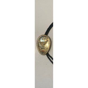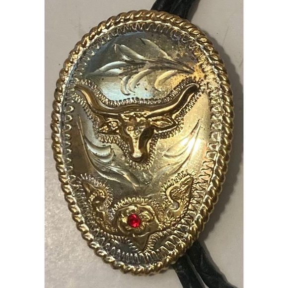 Vintage Metal Bolo Tie, Alpaca Silver and Brass, Nice Red Stone, Longhorn Bull, Nice Western Design, 2" x 1 1/2", Quality, Heavy Duty, Country & Western, Cowboy, Western Wear, Horse, Apparel, Accessory, Tie, Nice Quality Fashion, Free Shipping in the U.S.