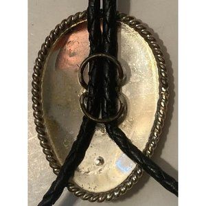 Vintage Metal Bolo Tie, Alpaca Silver and Brass, Nice Red Stone