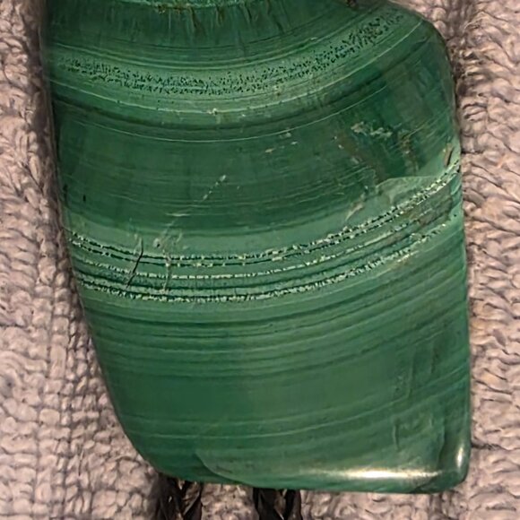Vintage Metal Bolo Tie, Bennett, Nice Big Green Stone Design with Stripes, Nice Design, 3" x 1 3/4", Nice Design, Quality, Heavy Duty, Made in USA, Country & Western, Cowboy, Western Wear, Horse, Apparel, Accessory, Tie, Nice Quality Fashion.