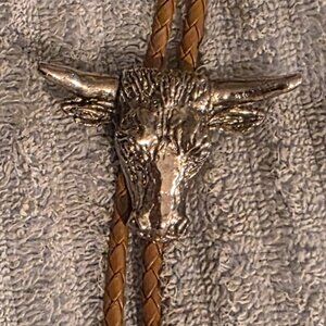 Vintage Metal Bolo Tie, Nice Cow, Bull, Angus, Beef, Nice Western Design