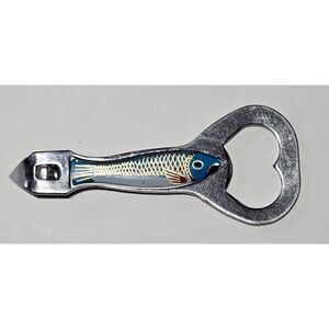 Vintage Metal Bottle Opener Enamel Blue Fish By Bell Korea PRISTINE