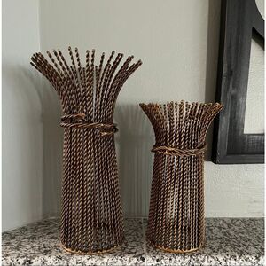 Vintage Metal Candle Holders Willow Wire Lot of 2 Decor Brown Gold