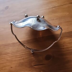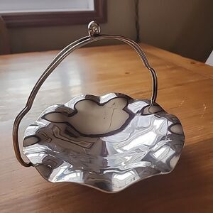 Vintage Metal Candy Dish Scalloped Edge & Holder with Twisted Handle. Polishes up very well. Ready to ship immediately.