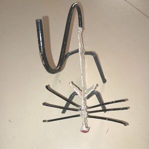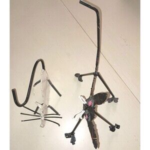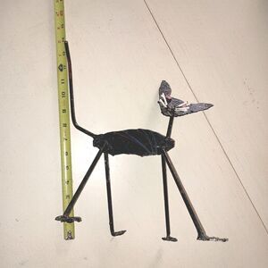 This vintage metal cat and mouse set is a unique and handmade piece that embodies the charm of a bygone era. Crafted from steel in the United States, these figurines feature a whimsical design that is sure to delight collectors and cat enthusiasts. This one-of-a-kind signed cat (BWM-on the bottom of a paw). Use for Halloween or year-round. Can be used inside and out. There are some paint chips and a little rusty crusty to add to the charm. They could also use a small bath. I'm sure neither like to be washed.