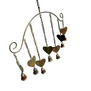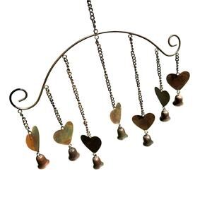 Vintage Metal Copper HEART COW BELLS WIND CHIME folk art yard
