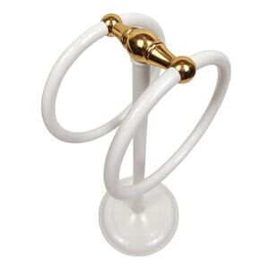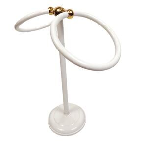 Vintage Decorative White and Gold Metal Countertop Bath Hand Towel Holder is in used, but in great condition.