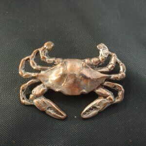 Vintage Metal Crab Brooch, 2"x1.75". Coppery color. Great realistic look.
