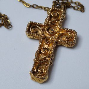 Vintage Metal Decorative Cross Necklace 23 Inches