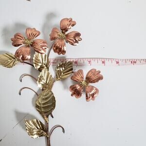 Vintage Metal Floral Wall Decor Brass & Copper Dogwood Flower Leaf MCM Set Of 4