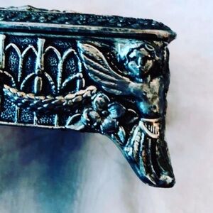 Vintage Metal Flower & Angel Embossed Footed Trinket Box.