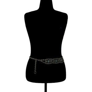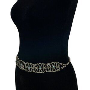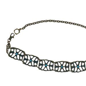 Vintage Metal Flower & Scrolls Chain Link Belt | Bronze & Turquoise Color