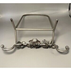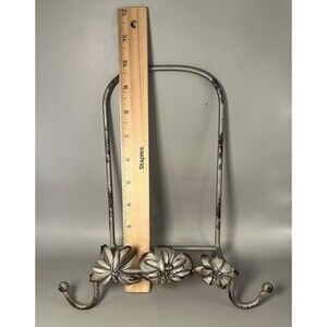 Vintage Metal Flower Tabletop Easel Stand Silver Distressed Hook Organizer Decor