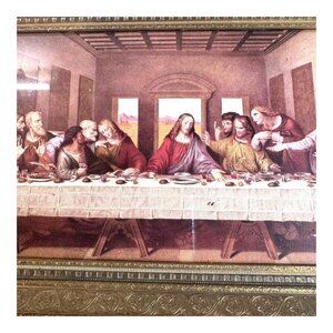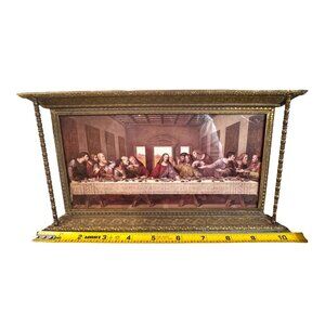 This elegant framed print of "The Last Supper" adds a touch of sophistication to any space. The intricate gold detailing of the frame enhances the timeless artwork, making it a valuable addition to your collection or home decor. The compact size fits perfectly on shelves or walls, offering a striking visual impact.