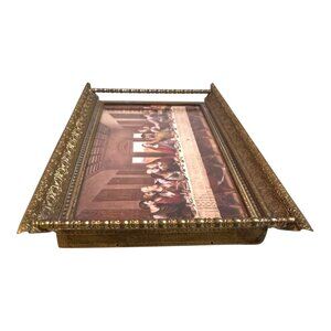 Vintage Metal Framed Velvet Back da Vinci The Last Supper Print 10 3/4” x 5 3/4”