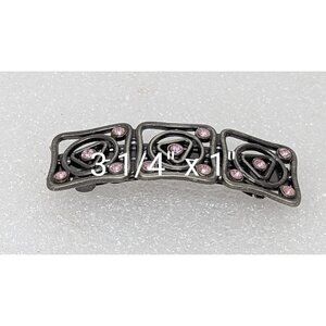 Vintage Metal Hair Clip With Pink Rhinestones 3.25" X 1"