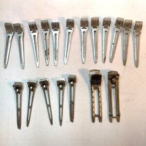 vintage hair clips, metal hair clips, duckbill hair clips, prong hair clips, hair styling clips, salon hair clips, assorted hair clips, hair sectioning clips, durable hair clips, grooming accessories, hair tools, vintage grooming tools, assorted sizes